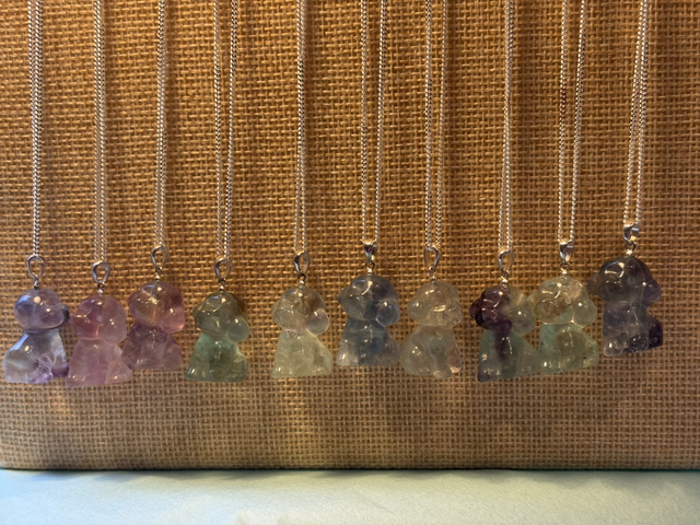 Fluorite comes in all different shades of clear green and purple to darker shades of green and purple due to its natural formation. Fluorite aid mental clarity and focus and brings positive energy reducing negative energy and thoughts. This would be a great necklace to support separation anxiety or neurodiversity anxiety
